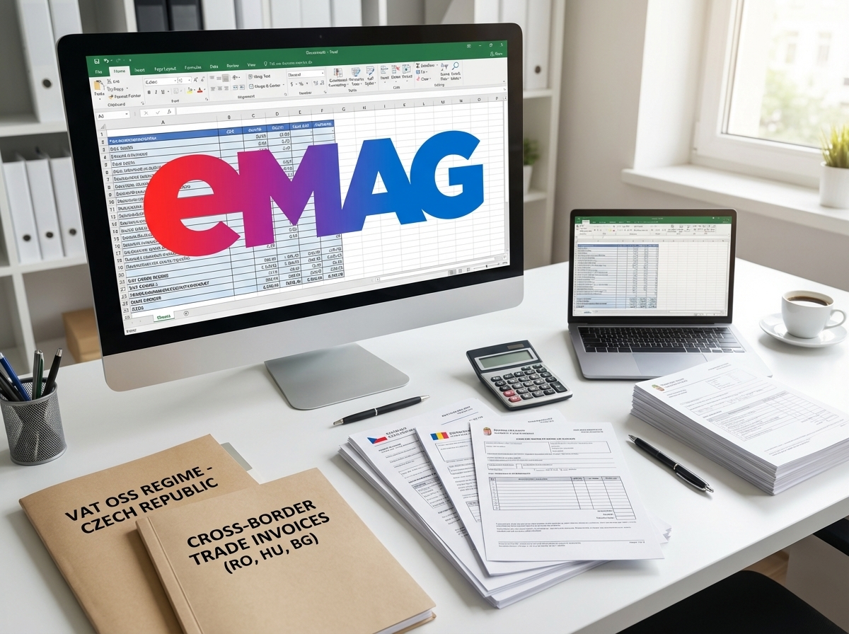 Daňové povinnosti jsou pro české prodejce na eMAG jedním z nejkomplikovanějších a nejpodceňovanějších témat. Prodáváte z Česka do Rumunska, Maďarska nebo Bulharska – tři různé země, tři různé DPH sazby, různá pravidla. Špatné nastavení DPH vás může stát tisíce eur ročně na pokutách, nebo naopak – zbytečně odvádíte víc, než musíte. V tomto článku projdeme všechny daňové scénáře, vysvětlíme režim OSS, lokální DPH registraci, Intrastat, fakturaci a ukážeme, jak vše správně nastavit, abyste byli v souladu se zákonem a zároveň neplatili víc, než je nutné.